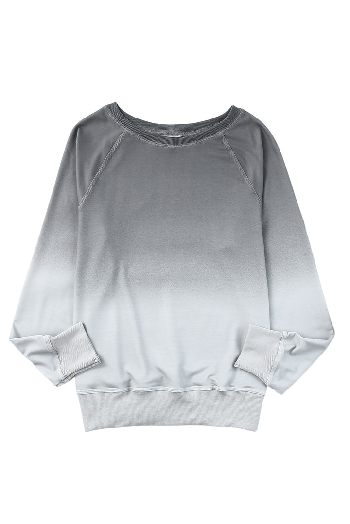 Chic ombre long sleeve sweatshirt with crew neckline and ribbed edges. Perfect for transitioning into fall!