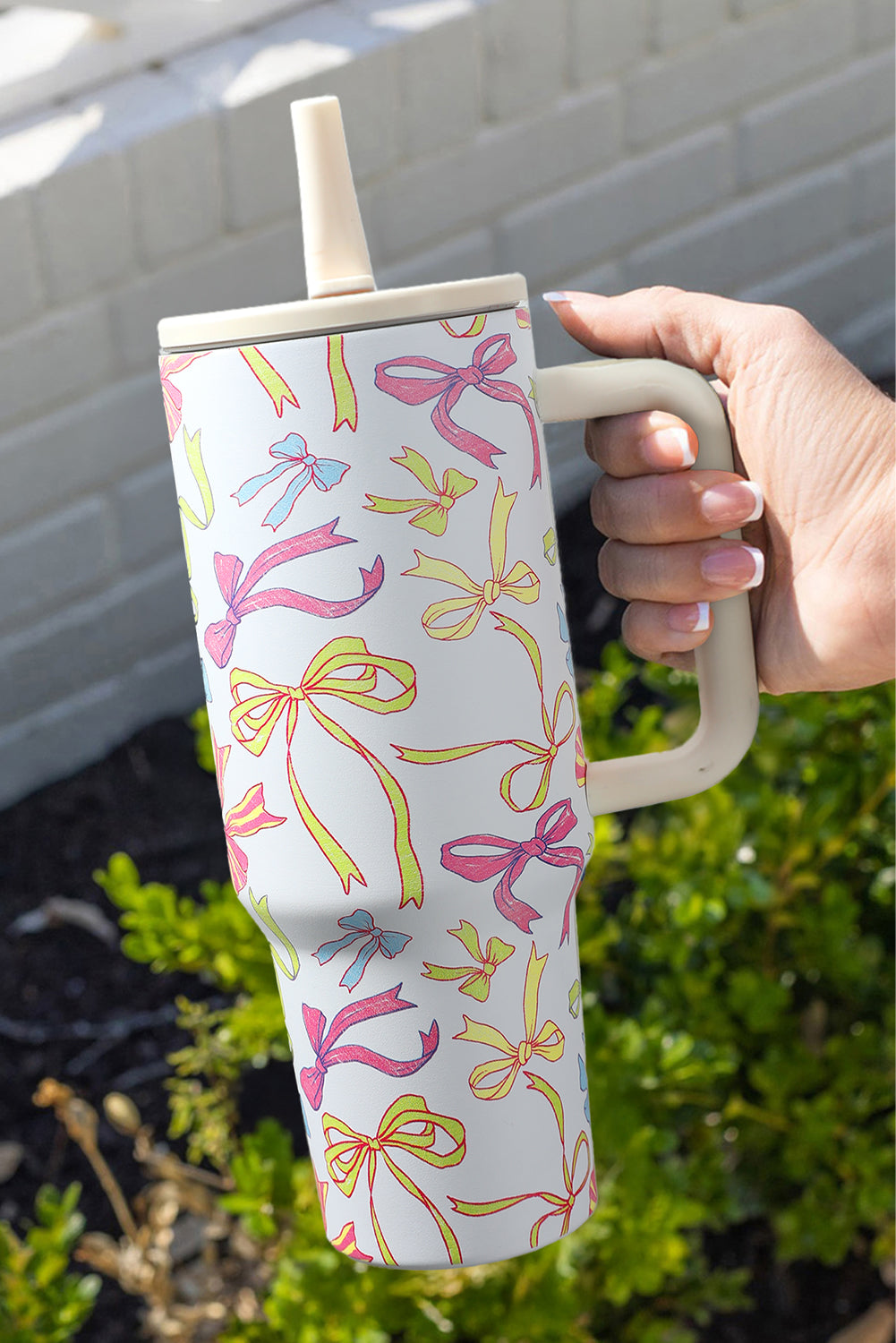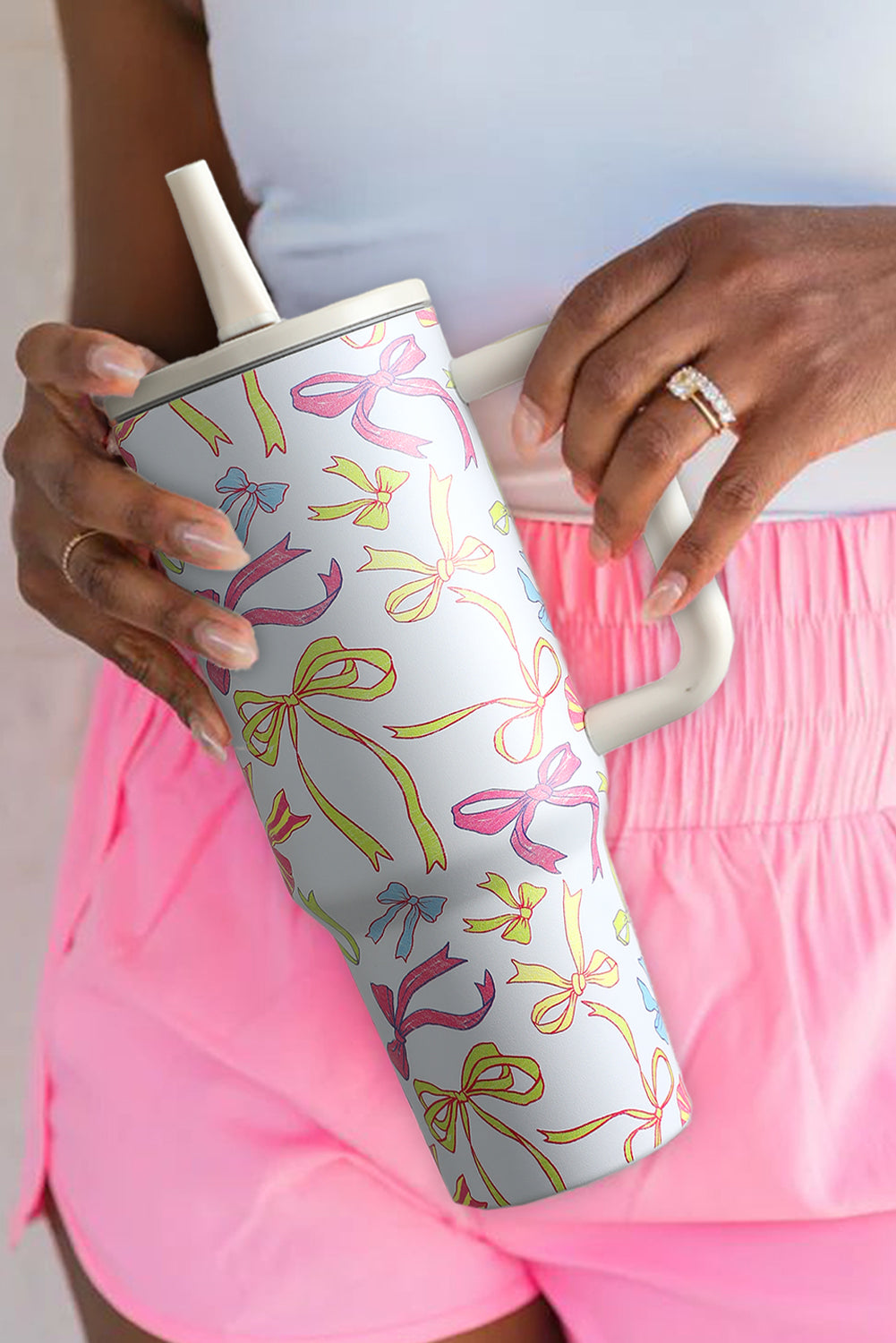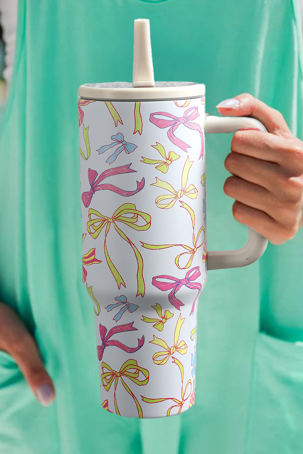 Gobelet isolant en paille avec poignée et imprimé nœud papillon, 1 134 ml