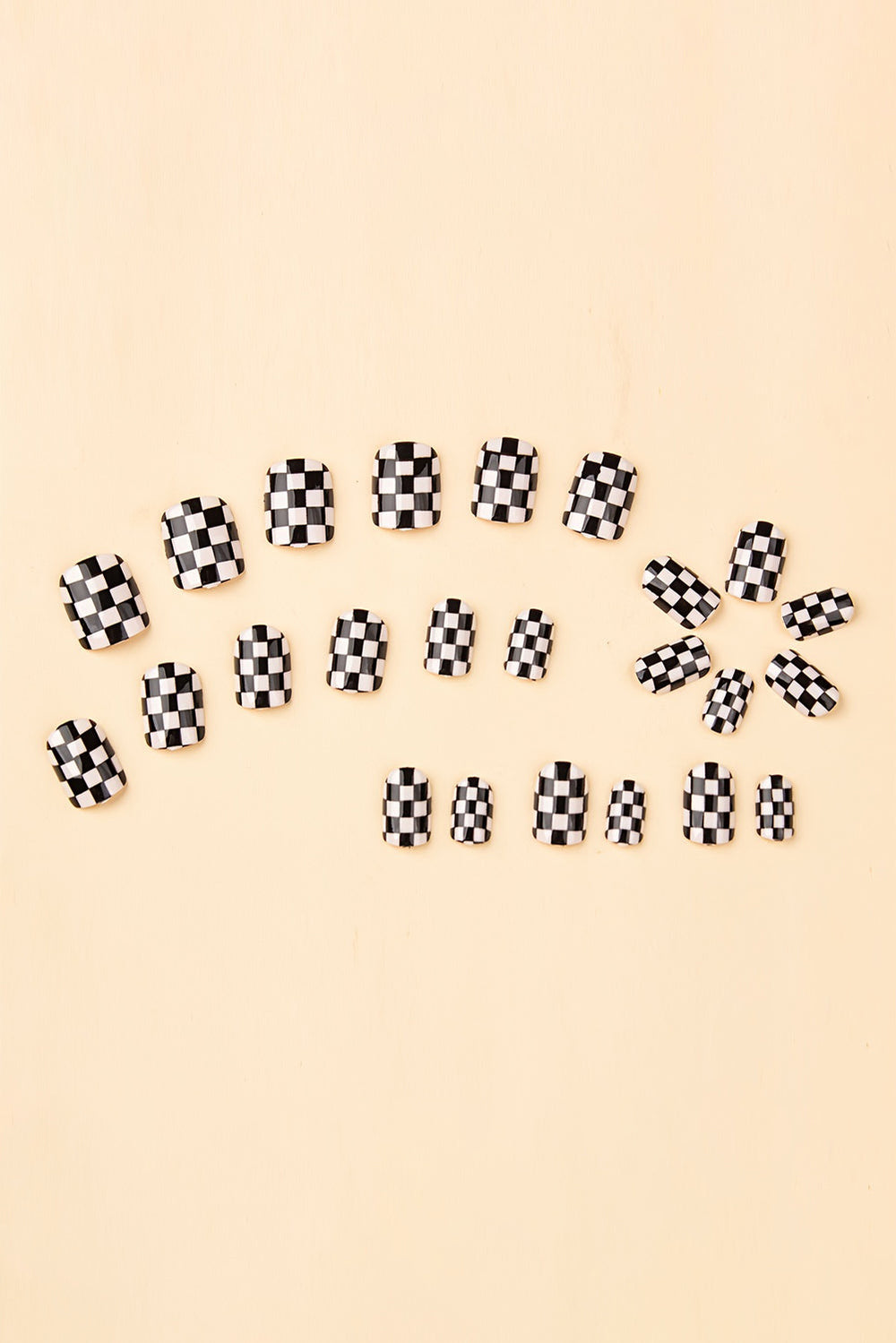 Checkerboard Pattern Resin Square Nail Sticker Set